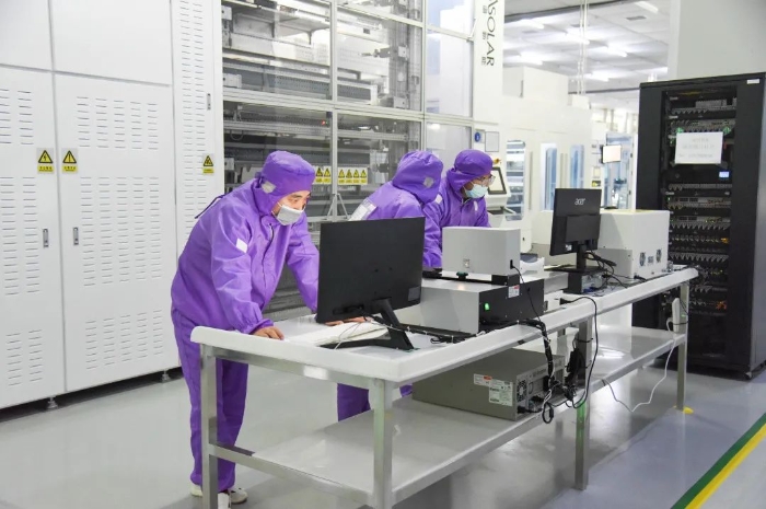 臨近歲末,位于泰州新能源產(chǎn)業(yè)園區(qū)的一道新能源生產(chǎn)車間內(nèi),AGV智能佐料小車運貨不停,工作人員戴著口罩在不同區(qū)域穿梭……作為泰州市海陵區(qū)新能源產(chǎn)業(yè)的龍頭企業(yè),2022年7月公司剛剛發(fā)布的高效N型TOPCon光伏電池產(chǎn)品,在市場上受到追捧,展示了其在光伏行業(yè)N型高效電池、組件的研發(fā)、生產(chǎn)實力。 “目前,我們12條電池生產(chǎn)線滿負荷生產(chǎn),日均可產(chǎn)出190萬片電池。”一道新能源電池制造中心總監(jiān)吳新榮說,即便如此,企業(yè)的訂單也已經(jīng)排到2023年三四月份。