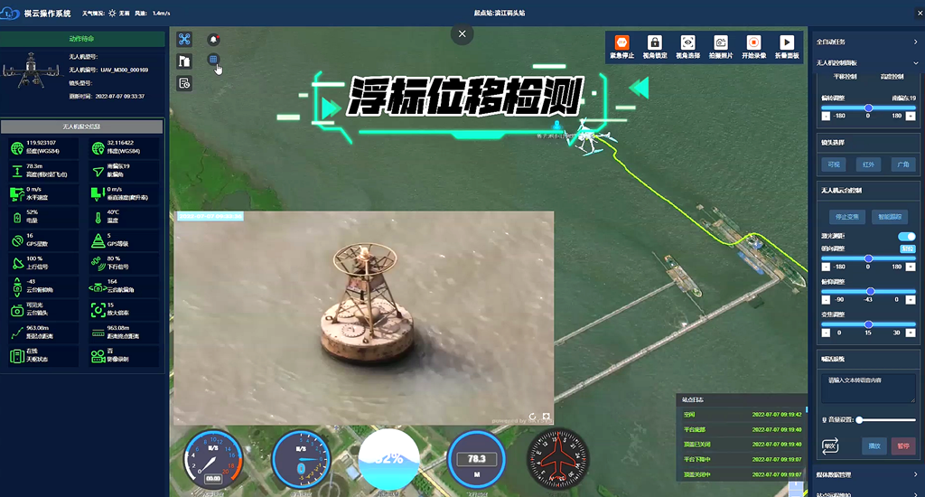 過去,港口碼頭、航道巡檢,主要依靠人力,但港口面積大、范圍廣、船舶數(shù)量多,人力成本高。港口頂部設備巡檢需靠人工攀爬,存在高空墜落風險,且人員巡檢頻次較低,不能及時發(fā)現(xiàn)設備的潛在風險。如今,借助無人機全自動化系統(tǒng),解決了諸多難題。除此之外,還能對水面油污進行監(jiān)測,判斷是否有偷排偷放情況;高空喊話功能,可以隨時對船舶、碼頭違規(guī)作業(yè)人員抓拍及喊話告警。遠程化、自動化、智能化的巡檢, 呵護著一江碧水,為港口發(fā)展注入科技力量。 |
