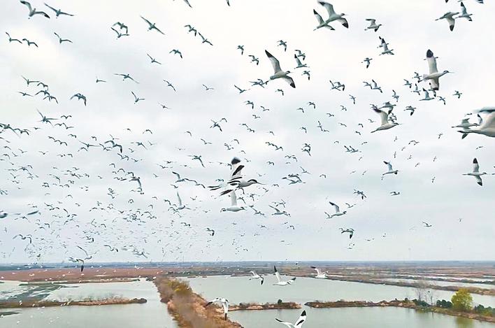 近日,江蘇省興化市的攝影達人周社根用無人機拍攝記錄下成群反嘴鷸飛臨興化里下河國家濕地公園的壯觀場面。它們成群結隊翩翩起舞,聲勢浩蕩,宛如一群落入凡塵的小精靈。 這一壯觀場面是2022年12月17日拍攝到的。當時,周社根帶著無人機來到濕地公園,無人機飛出一段距離后,發現屏幕中出現了密密麻麻移動的小白斑。周社根迅速將無人機飛近,這時鏡頭中出現了3個種群近千只的反嘴鷸。它們在鏡頭下展現著優美的舞姿,自由歡快地飛翔著。