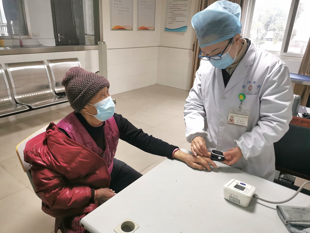 1月14日下午,在靖江市城南辦事處江澄苑社區(qū)衛(wèi)生服務(wù)中心不時(shí)有前來(lái)配藥、量血壓、做血氧檢測(cè)的居民。自從得知衛(wèi)生服務(wù)中心配備了4臺(tái)脈氧儀后,前來(lái)進(jìn)行血氧飽和度檢測(cè)的居民就越來(lái)越多。80歲的陳鳳珠老人“陽(yáng)康”后時(shí)有胸悶氣短的感覺(jué),醫(yī)務(wù)人員第一時(shí)間給老人做了檢測(cè),“醫(yī)生們都很熱情,我感覺(jué)有點(diǎn)不舒服會(huì)過(guò)來(lái)讓他們幫忙檢測(cè),就在家門(mén)口很方便,測(cè)一下自己也放心。”