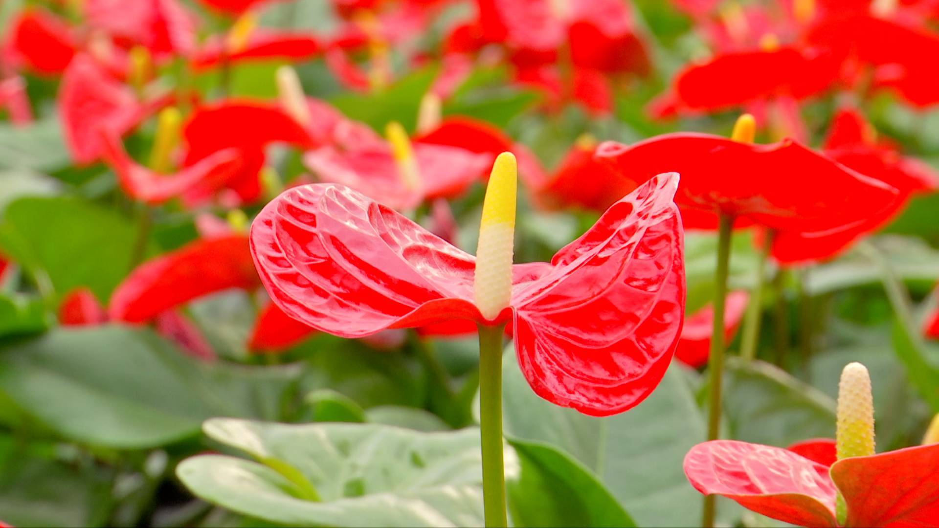 翠綠色的心形葉子,鮮艷的掌形花朵,托舉著一個長長的金色花蕊,給人一種熱烈的感覺。得益于科技賦能,原本只能生長于熱帶雨林的紅掌在泰州市海陵區罡楊鎮罡門村生根發芽。從一方農田到六萬平方米的智能溫室大棚,短短幾年,紅掌產業正帶領著罡門村村民走上致富路。