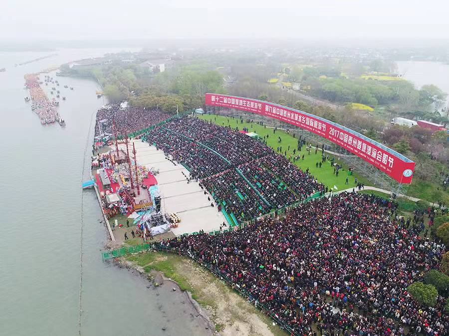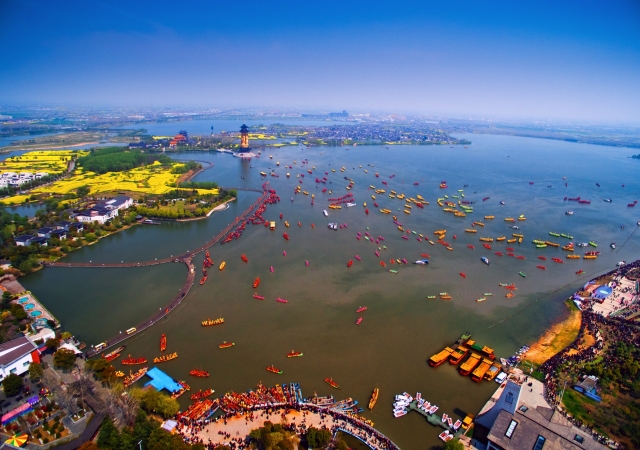 “從過去的民間組織到政府主導再到社會參與,會船也隨著時空的穿越,變成了全社會共同參與的盛會。溱潼會船己演變成一種水鄉兒女奮進新征程、建功新時代的美麗畫卷。”曾任姜堰區溱潼鎮黨委書記的肖樂平深有體會地說。 從過去會船的“窄”變成了水上文化的“寬”,姜堰人把船會越辦越震撼。時間跨度從原先的幾天會船變成了一個多月,天天有會船,場場有精彩;從過去的單項會船變成了“視覺文化盛宴”,各種文藝活動精彩紛呈,水上各種極限運動應有盡有,岸邊文娛活動,讓游客大呼過癮;從過去的幾千人變成了十多萬人,整個溱湖變成了歡樂的海洋。 今年中國泰州姜堰溱潼會船節更值得期盼,除了規定動作外,你還可共品到壯懷激烈的“滿姜紅”,暢游最有家國情懷的姜堰:共賞到水波蕩漾的“滿姜紅”,暢游最有詩意的姜堰;共享到千年文脈的“滿姜紅”,暢游最有文藝范的姜堰;共赴生活紅火的“滿姜紅”,暢游最有煙火氣的姜堰。與歷史重逢,與文化對話,更有數不盡的盲盒,享不盡的驚喜。 “會船會水”全業融合,水上狂歡 激活會船非遺活態傳承的生命力,讓會船結出有滋有味的幸福生活新果實。近年來,姜堰區在傳統民俗和現代生活中找到了連接點和共鳴處,將保護傳承與合理開發相結合。 今年會船節,姜堰區精心策劃4大類、18項系列活動,讓游客大飽眼福。打造全域旅游新亮點,展示鎮村有驚喜的全景畫卷,會船節期間,“堰上花開”鄉村旅游節重啟,古鎮溱潼尋覓古韻鄉愁、千垎周莊品味田園詩畫、潼享田園盡享天倫之樂,讓游客邂逅“十里不同風、百里不同俗”的水鄉風情,以會船拉動旅游產業。 打造全業融合新境界。會船節期間,文化、賽事、經貿為一體的饕餮盛宴如約而至,賞析高二適書法,感悟“當代草圣”揮毫潑墨的酣暢淋漓;溱湖半程馬拉松,體驗速度與汗水的對決;群眾文化藝術節,感受傳統藝術的無窮魅力;聽船娘悠揚清脆的搖櫓小調;看“生態環境全球500佳”河橫村;賞十里濱水長廊;棲身小楊人家網紅民宿;游院士故居;探訪單塘河新石器遺址;追尋西周江淮第一城的輝煌歲月;打卡溱潼磚瓦博物館;對話文人大師;游覓蘇中第一個紅色蘇維埃政權誕生地;經貿洽談會,在溱湖等你,真正實現會船搭臺,經貿唱戲。