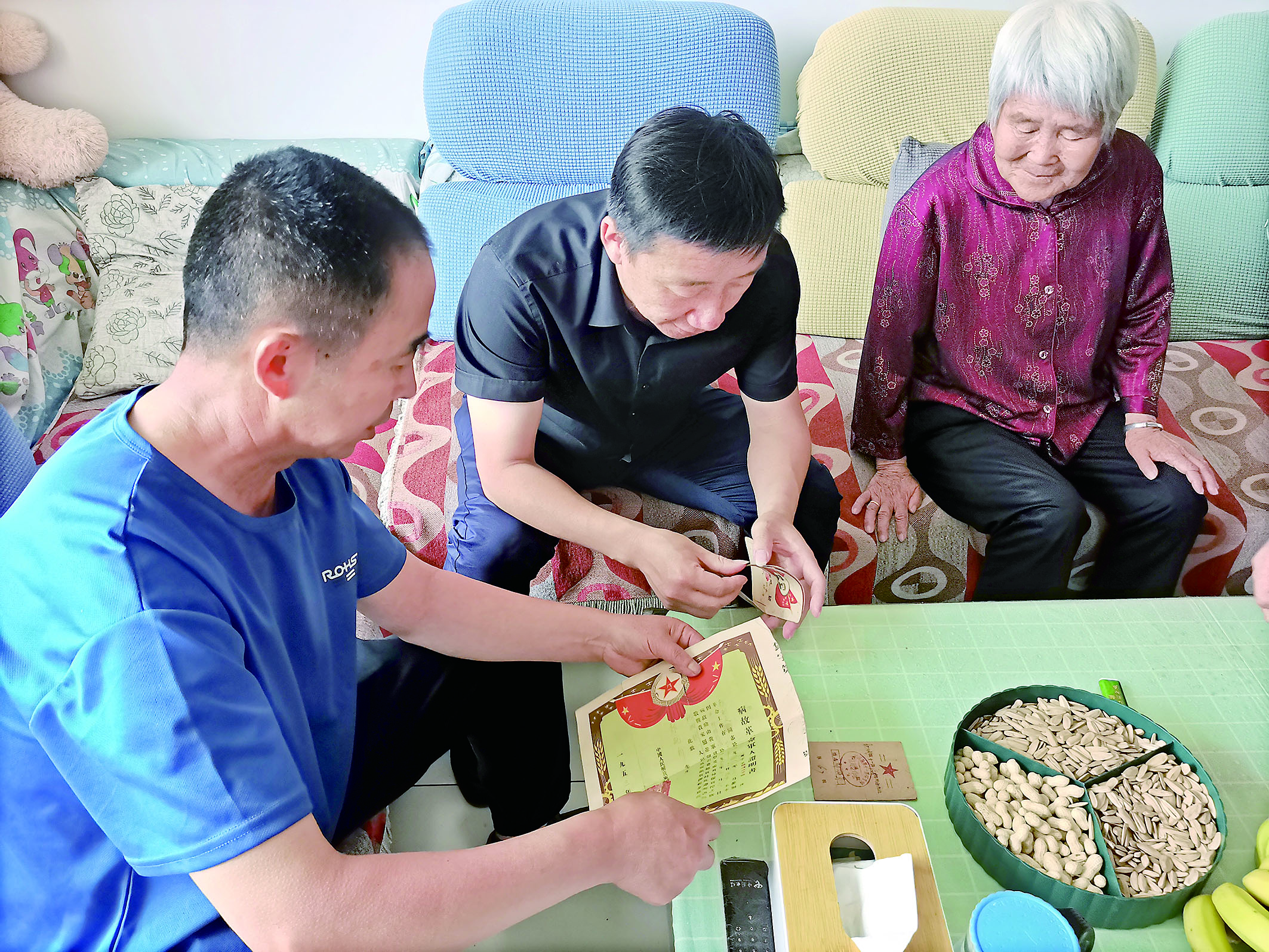 此前,泰州市啟動“70年·70人”志愿軍戰(zhàn)士專題尋親活動,在泰州市相關(guān)部門和志愿者的努力下,成功為郭泗友烈士尋得親屬。5月19日,工作人員從泰州出發(fā),遠(yuǎn)赴山東、北京,慰問郭泗友家屬,了解當(dāng)年英烈事跡。 “我的爺爺、父親、姑姑在上世紀(jì)三四十年代都陸續(xù)參加革命。”郭愛蓮告訴記者,郭家明字輩、長字輩、泗字輩均有人投身革命,可以稱得上是革命世家。 據(jù)悉,郭泗友年幼時父母相繼去世,家中有兄弟姐妹六人。“那個年代,檔案登記都是靠手寫,有的寫成嗣,有的寫成泗,其實都是通用的。”郭愛蓮說,“病故革命軍人證明書上面寫的名字是郭嗣友,而志愿軍證上填的是郭泗友,其實是同一人,中華英烈網(wǎng)上能查到他。” 郭愛蓮說,堂哥郭泗友大她12歲,兄妹倆感情很好,“郭泗友參加革命后,部隊曾在山東省東平縣駐扎,那時他曾回來看過我,給我?guī)Я藘善绅z頭,還領(lǐng)我去家旁邊的花生店買了花生,自那之后,就再也沒有見過。” 郭泗友在黑龍江訥河療養(yǎng)時,他的二弟郭泗新曾去探望過他。“郭泗新回來時,帶著一個搪瓷杯,上面寫著‘送給最可愛的人’的字樣,另外還有一包糖果,以及一個手絹送給我。”郭愛蓮回憶,后來堂哥寫信說要從訥河轉(zhuǎn)到泰州療養(yǎng),會途經(jīng)濟(jì)南,想回家看看,“我和母親當(dāng)時很激動,誰知堂哥未能回來,緊接著就收到了他犧牲的消息。” 郭愛蓮到北京工作后,從沒忘記堂哥當(dāng)時“想回家”的心愿。她打聽得知,當(dāng)年有志愿軍戰(zhàn)士被送至江蘇省第八康復(fù)醫(yī)院治療,就將信息告訴在南京打工的侄子郭慶石,讓他繼續(xù)尋找。郭慶石于今年春節(jié)后到泰州市尋訪,最終確認(rèn),伯伯郭泗友就安葬在這里。