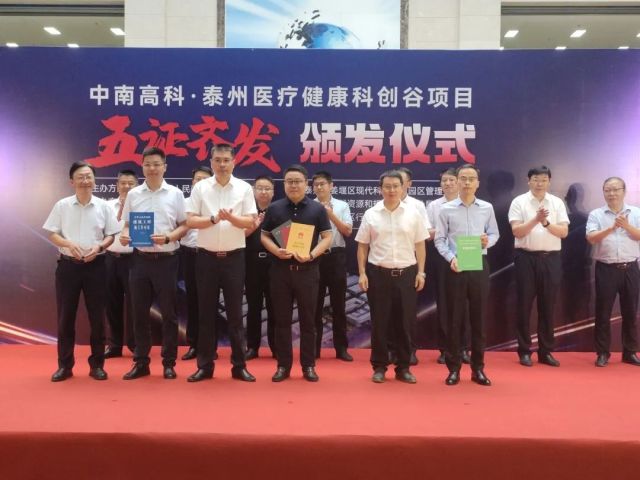 7月20日,中南高科產業集團在泰州市姜堰區同時領取了建設用地規劃許可證、建設工程規劃許可證、不動產證、施工許可證、施工圖審查合格證書,成為姜堰區首個“五證齊發”項目,實現“拿地即開工”。