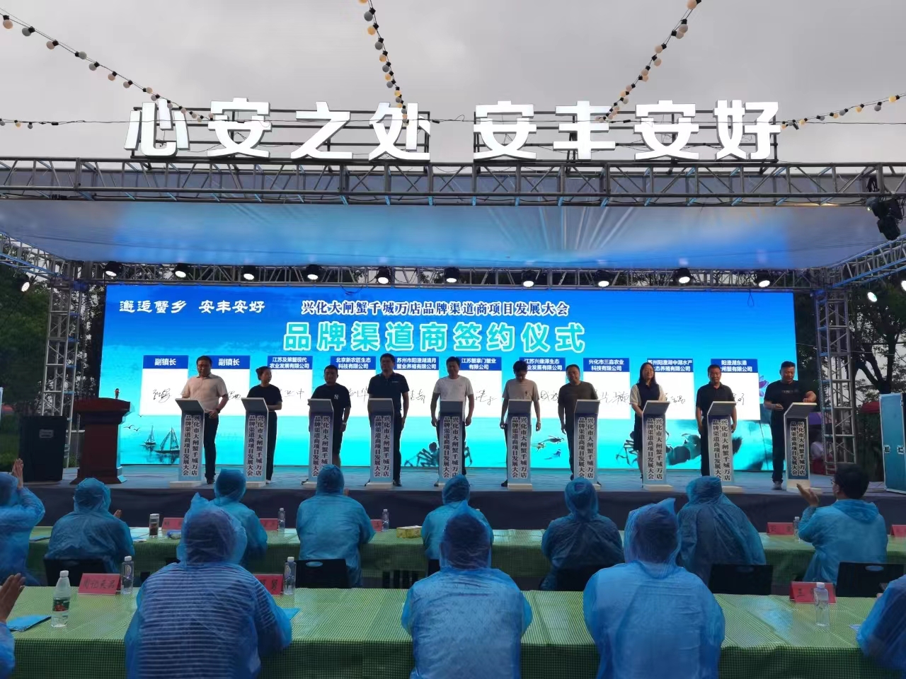安豐鎮到底有多少蟹塘面積?今年初,安豐鎮組成4個小分隊,分赴42個行政村,全面核實每個蟹塘確權面積、秧池、自留地、場基等構成,同時租用第三方無人飛機,對全鎮所有蟹塘面積進行航拍,統計每個蟹塘的實際面積。經統計,全鎮現有河蟹養殖塘口7844個、17.86萬畝,除去村民的場基、秧池、自留地等,剩溢面積近1萬畝。 “村集體的嚴格收回來、閑散的認真盤起來、老百姓的努力合起來”,一場維護村集體和老百姓利益的攻堅戰隨即打響。截至5月底,安豐鎮新增村集體經營性收入1120萬元,同比增加51%,村平均增加26.7萬元。而通過蟹塘資源的規范管理,該鎮理順了塘口的所有權、承包權、經營權,穩定了塘口承包關系,化解了大量涉農涉地的信訪矛盾,有效維護了村集體、老百姓的合法權益。 尋找“最會賣蟹的人” 7月20日,在安豐新時代·銀座文旅街區,興化大閘蟹千城萬店品牌渠道商項目發展大會舉行。現場,來自全國各地的24家品牌渠道商與安豐鎮簽約,共同做強安豐螃蟹“買全國、賣全國”品牌。