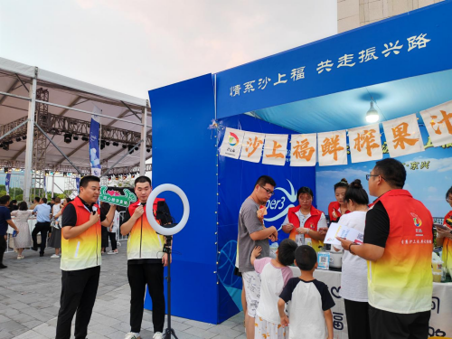 “直播間的小伙伴們晚上好,今天我們帶來的是皮薄肉脆的翠冠梨和清甜可口的梨汁,歡迎大家前來品嘗。也請大家多多點贊關(guān)注,為鄉(xiāng)村振興助力。”晚上7點半,靖江市東興鎮(zhèn)旺稼村黨總支副書記王杰銘帶著“沙上‘煉’兵”先鋒隊隊員來到靖江市印象城,開啟一場特別的戶外直播,推介東興鎮(zhèn)“沙上福”品牌的農(nóng)產(chǎn)品。