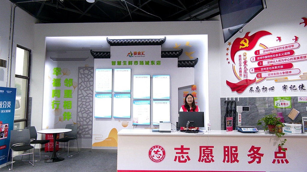 在城東智慧生鮮市場,大門入口處不僅設立了志愿服務點,向市民提供公平秤、急救箱、雨傘、開水等服務,還設立了顧客休息區以及泰興美食非遺展示區。誠信經營、講文明樹新風等社會公益宣傳氛圍濃厚。市場采用超市布局模式,物品擺放整齊,環境干凈整潔。“落實保安人員加強菜場內外的巡查,禁止菜場內吸煙以及寵物狗入內,同時規范周邊車輛停放管理,為市民營造一個良好的購物環境。”市場管理員郭國良介紹。