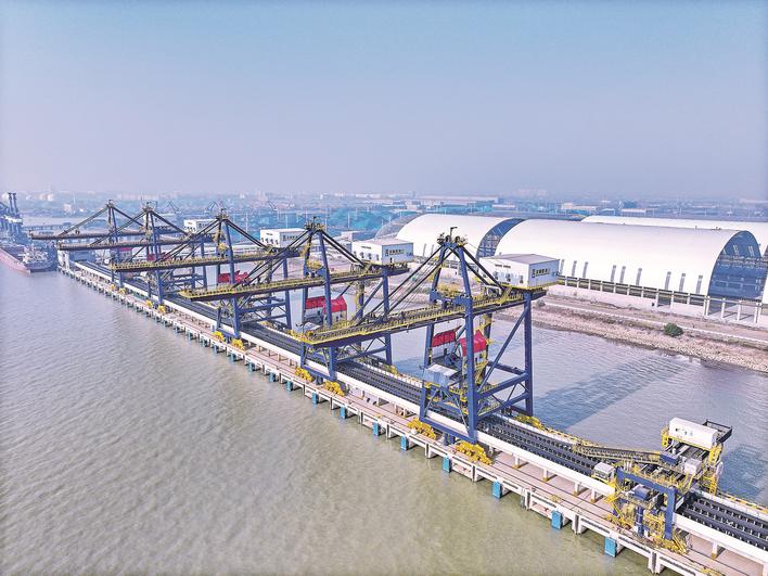 深國際智慧物流港區位于靖江經濟技術開發區,項目總投資22.8億元。作為全省首批推進封閉式料倉的建設項目,深國際智慧物流港區項目于2022年3月啟動建設,聚力打造集“綠色、智慧、高效、安全”于一體的現代化港口碼頭,是江蘇省重大項目、省服務業重點項目,被列入全國重點外資專班項目,榮獲2022年度江蘇省公路水運平安百年“品質工程”、平安工地建設“省級示范工程”。 目前深國際智慧物流港區已順利通過一階段工程竣工驗收工作,成功取得港口經營許可證。港區使用長江岸線693米,建有10萬噸級碼頭泊位2個,泊位長度693米,可全天候滿足5萬噸級海輪靠泊和10萬噸級海輪減載或乘潮靠泊,設計年通過能力1360萬噸。 據介紹,“鼎鑫109”海輪長約209米,載貨量達6.3萬噸,到達深國際智慧物流港區碼頭后,流暢地完成靠港、靠泊、系纜、查檢等步驟,順利開展駁載作業。 “海輪在港區裝卸設備的作用下,實現全自動過駁貨物,并經由傳送帶將貨物駁載至9艘江輪上。”江蘇興旺物流有限公司副總經理梁濤介紹,通過江海換裝,江輪滿載后,沿著長江溯流而上,將貨物送達上游電廠,為今冬的“迎峰度冬”提供能源保障。 按照港區目前配備的裝卸設備效率,整個過駁作業正按照最快速度進行。實施過駁作業的裝船機額定效率達到5400噸/小時,卸船機的額定效率達到1800噸/小時,均是長江沿線同貨種效率最高、外形尺寸和整機重量最大的裝卸設備,負責運輸的皮帶機寬度達到2.2米,為長江內河港口輸運散貨物料“最寬”的皮帶機,可有效減少灑料,最大化保護環境。 智慧高效是深國際智慧物流港區的顯著特色。作為江蘇省重大項目,深國際智慧物流港區在項目工程技術創新進步等方面先行先試,在沿江港口工程首次成功應用裝配式預制下橫梁技術,配備智能化物流裝卸輸送系統和數字化堆場管理、智能化無人值守、全封閉干煤棚、光伏發電等智能環保設備,建設國際領先的現代化智能物流樞紐。 |
