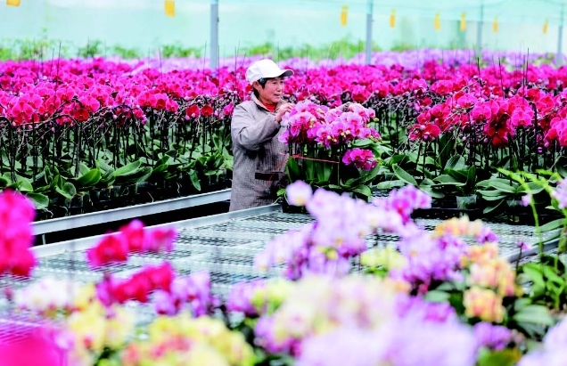 2021年,退役軍人張杰在姜堰區顧高鎮注冊成立泰州杰杰高農業發展有限公司,流轉200畝土地種植園藝花卉。其中,連棟大棚面積20畝,用于蝴蝶蘭種苗及成品花卉培育。花卉種植項目不僅充分發揮了土地經濟效用,還為附近村民提供就業增收機會。 張杰介紹說,基地在顧高鎮每年都有用工,主要以當地留守人員為主,基地對村民進行花卉種植常識培訓以及組盆、花卉造型技藝培訓,目前每天有十幾個村民在基地工作。 蝴蝶蘭因花姿如蝴蝶飛舞而得名,鮮艷喜慶、寓意美好,素有“蘭中皇后”的美譽,深受泰州市民喜愛。經過幾年的探索與栽培,基地的蝴蝶蘭種植規模不斷擴大,品種不斷完善,如今已有八大系列60多個品種,其中“大辣椒”“滿天紅”“小孔雀”成為最具代表性、最受青睞的品種。 現在花卉已經進入年宵花卉銷售旺期,每天有3輛卡車來拉貨,有五六百盆七八千株的銷量。一些年輕人喜歡的白色、粉色、橙色的小清新色彩成為今年市場的新寵。基地一共種植了15萬株蝴蝶蘭,可以滿足不同層次需求的人來選購。 科技賦能是農業高質量發展的關鍵因素。由于蝴蝶蘭在氣溫20℃左右生長最為適宜,長得更壯、顏值更高。這里的溫室安裝了數字化農業系統,可根據蝴蝶蘭生長需求自動調節相應的控溫、控濕、遮光設備,對花卉的品質、環境溫度控制均衡、穩定,大大減輕了現場管理的力度和頻次。 目前,花卉生產基地年產蝴蝶蘭和繡球等種苗40萬株、成品蝴蝶蘭15萬株,畝均產值超過20萬元。據介紹,基地將繼續推進大棚設備及溫控系統改造升級,進一步降低電能、減少農藥和化肥使用,提高畝均收益。 |