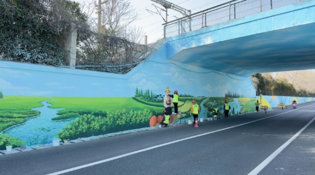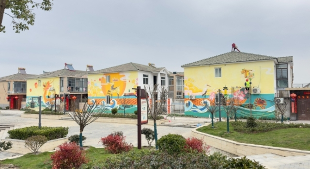 泰州學院美術學院教師殷衛霞介紹說,本次創作主要向遠方來客展示姜堰,創作主題圍繞人文景觀和姜堰特色,我們師生團隊一起完成。時間緊,任務重,20多名學生加班加點,從設計到繪畫,希望通過墻繪為姜堰旅游產業添磚加瓦,為姜堰城市美化做一份力所能及的貢獻。 小楊人家作為溱湖灣特色田園鄉村示范區的重要陣地,泰州學院美術學院的學生將村莊房屋老舊的白墻變成一張張生動的畫布,在色彩斑斕、創意十足的墻繪里融匯櫻花、觀光休閑、農耕文化等元素,結合小楊社區打造特色田園鄉村的亮點做法,打造小楊人家“網紅墻”,實現“村莊顏值”“精神文明”“鄉村旅游”三提升。