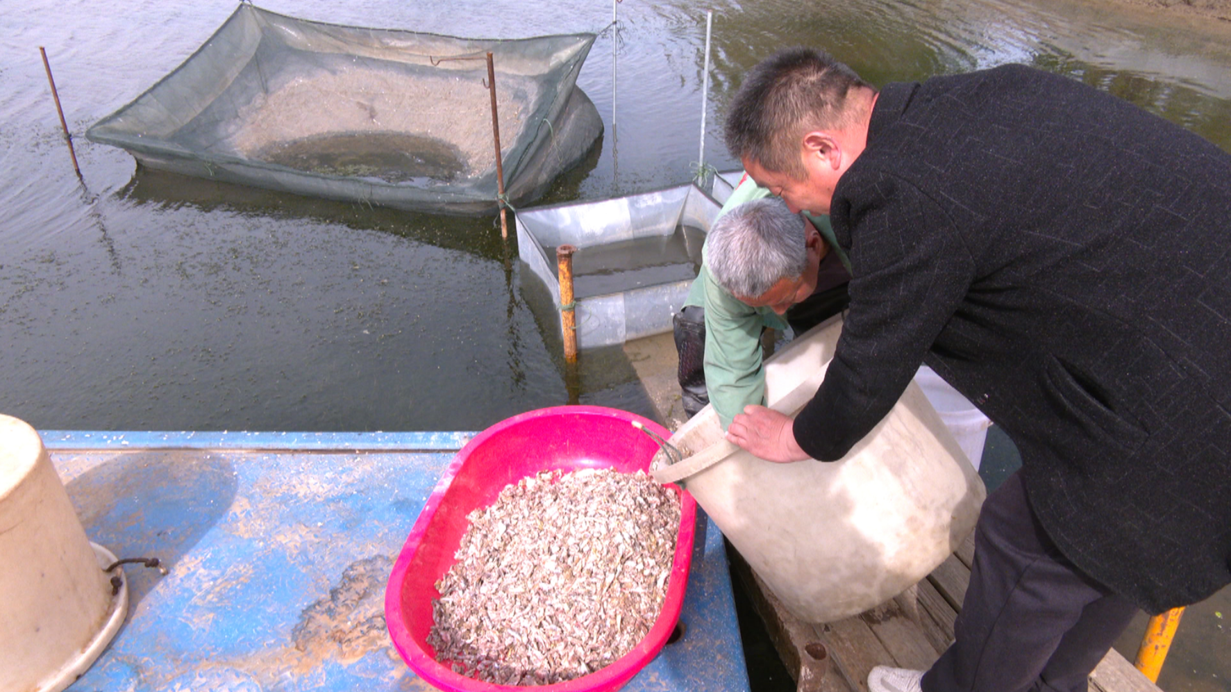 日前,在泰興市分界鎮滕興村的銘濤家庭農場,螃蟹養殖戶劉志在漁業農技人員的專業指導下,精心為剛投放的蟹苗配制科學的營養飼料。據漁業農技人員介紹,這種飼料充分考慮了蟹苗生長所需的各類營養元素,能夠有效促進成長。眼下,螃蟹已經完成了第一次蛻殼,進入快速生長期,對營養的需求量大增,增加飼料中的蛋白質和礦物質含量,可以確保蟹苗得到充足的營養支持。 通過漁業農技員的指導,養殖戶從冷庫中取出深海小魚打碎成泥,再配上益生菌發酵的玉米,投喂到蟹塘當中。這樣的螃蟹口糧雖然價格比普通飼料每公斤貴了12元,但通過定制化的食譜,螃蟹能夠有效提升活力,避免發生“蟹塘病”,提高了蟹塘畝產綜合效益。“我們從蟹苗開始就要舍得投喂,溶氧量要高,放養密度跟水草的密度要適量,螃蟹在這種環境當才能夠長得健碩。目前,我們農場的成蟹畝產量在二百七八十斤。”養殖戶劉志介紹。 創新模式,激活螃蟹養殖“一池春水” 當前正值水上春耕的緊要關頭,泰興市的江沙蟹養殖戶們正緊鑼密鼓地進行漁業播種與繁育工作。他們不斷探索、創新生產模式,力求通過科學養殖和精心管理,為今年的增產豐收奠定基礎。