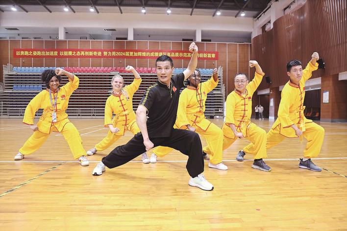 “大王慷慨悲歌使人淚下,待妾妃歌舞一回……”來自泰州市梅蘭芳京劇團(tuán)的專業(yè)男旦演員龐鈞馳登臺(tái)表演《霸王別姬》選段,當(dāng)他扮演的“虞姬”踮著碎步剛一亮相,立馬引發(fā)全場(chǎng)尖叫,一段精彩的劍舞更是看得現(xiàn)場(chǎng)師生如癡如醉,掌聲雷動(dòng)。表演結(jié)束,美國師生紛紛上臺(tái)和“虞姬”合影。 “So cool!So beautiful!”來自美國邁阿密的學(xué)生Keedy Brown Christine一臉驚奇地說,“我是第一次零距離接觸京劇,太有意思了!男扮女裝更是讓人意想不到!” 臉譜作為戲曲中區(qū)分不同角色性格和身份的造型藝術(shù),是中國元素的典型符號(hào)之一。活動(dòng)現(xiàn)場(chǎng),省泰中學(xué)生和美國學(xué)生一對(duì)一結(jié)對(duì),一起在老師的指導(dǎo)下繪制京劇臉譜,不少結(jié)對(duì)學(xué)生還在畫作上簽名,互贈(zèng)作品,作為彼此友誼的見證。 武術(shù)同樣是我國國粹之一。在“中華武術(shù)體驗(yàn)”環(huán)節(jié),泰州市武術(shù)協(xié)會(huì)副秘書長蔡國慶為大家展示了精彩的后空翻、南拳和五步拳,并一招一式教授中美學(xué)生練習(xí)拳、掌、勾手、弓步、馬步、撲步、虛步等基本武術(shù)拳法。一些美國師生意猶未盡,紛紛穿上武術(shù)服再次“過把癮”。