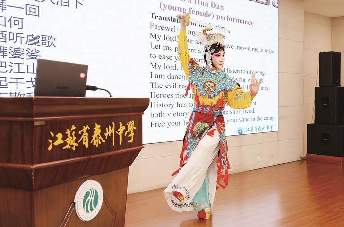 6月22日至24日,“錦繡江蘇·美國青少年交流營”活動(dòng)走進(jìn)泰州,來自美國五個(gè)州的41名師生展開了為期三天的特色校園行、歷史人文之旅、科技體驗(yàn)之旅、田園生態(tài)之旅。一路上,大家聽京劇、畫臉譜、練武術(shù)、品早茶、游溱湖,沉浸式體驗(yàn)中國傳統(tǒng)文化民俗的深厚魅力。 體驗(yàn)傳統(tǒng)文化,感受國粹魅力 “京劇是中國國粹之一。出身京劇世家、祖籍泰州的梅蘭芳先生是第一位帶著中國京劇走向世界的京劇藝術(shù)大師,他的藝術(shù)風(fēng)格獨(dú)特,被譽(yù)為‘梅派’。”22日上午,美國師生走進(jìn)江蘇省泰州中學(xué),開展“梅韻京腔”活動(dòng)。