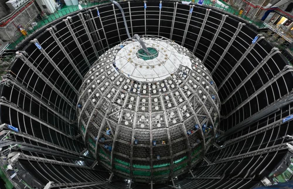 “這是用在探測(cè)器上的最后一批亞克力板材,我們有50多名工人正在現(xiàn)場(chǎng)安裝,預(yù)計(jì)7月底完成拼接。”湯臣科技董事長(zhǎng)湯月生告訴記者。 中微子被稱(chēng)為宇宙中最神秘的幽靈粒子,它無(wú)處不在,卻來(lái)無(wú)影去無(wú)蹤,以光速運(yùn)行,輕松穿透任何物體。為了捕捉中微子,中國(guó)科學(xué)院高能物理研究所耗時(shí)八年,在廣東江門(mén)地下700米深處,建造了一座巨型實(shí)驗(yàn)室,其中最核心的探測(cè)器“粒子之眼”要求建成直徑為35.4米的有機(jī)玻璃球。面對(duì)神秘的微粒子,湯臣接受了有機(jī)玻璃制造史上前所未有的挑戰(zhàn)。
