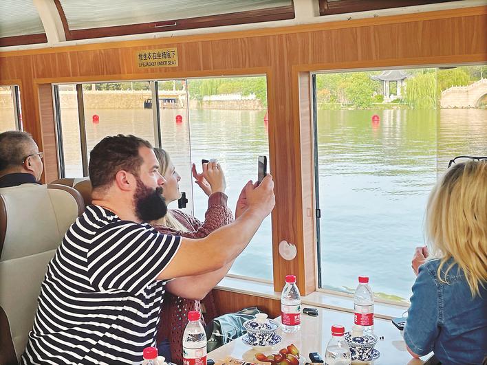泰州的秋天絢爛多彩。14日,奧地利記者游覽鳳城河風景區(qū),參觀全國獨一無二的文化景觀“戲曲文化三家村”——梅園、桃園、柳園,了解京劇大師梅蘭芳、戲曲作家孔尚任、評書評話祖師柳敬亭的生平事跡。15日,在姜堰溱潼古鎮(zhèn)和溱湖國家濕地公園,大家參觀院士舊居、茶花院等地,品嘗藕粉酒釀、薄脆等特色美食,探尋古鎮(zhèn)悠久的歷史人文風貌;靜坐搖櫓船聆聽船娘小曲,行至麋鹿家園看鹿群追逐嬉戲,欣賞獨特的濕地生態(tài)風光。