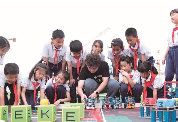 中華優(yōu)秀傳統(tǒng)文化正以多種形式走進(jìn)課堂、浸潤(rùn)童心。為增強(qiáng)學(xué)生文化自信、提升文化素養(yǎng),海陵區(qū)積極開(kāi)發(fā)傳統(tǒng)文化、經(jīng)典誦讀、地方民俗、京劇藝術(shù)、珠心算、工藝制作等校本課程,形成“樂(lè)學(xué)”“美好”“青松”等一批各具學(xué)校特色的校本課程體系;廣泛開(kāi)展“鳳城·悅讀”活動(dòng),先后邀請(qǐng)黃蓓佳、祁智、梅子涵等作家走進(jìn)校園;推動(dòng)中小學(xué)形成各具特色的勞動(dòng)教育新模式,涌現(xiàn)出大浦小學(xué)“銀杏娃走進(jìn)春天”、城東小學(xué)“‘農(nóng)’情相伴 逐夢(mèng)‘童’行”、二附中“東園‘食’光‘廚’我其誰(shuí)”等一批勞動(dòng)教育新樣式。 全域協(xié)同辦學(xué) 助力“幸福教育” “我要被VR里的恐龍抓住啦!”“我的魚(yú)雷最遠(yuǎn)!”“燈泡亮啦!”……在日前舉辦的海陵區(qū)2024年“全國(guó)科普日”主場(chǎng)活動(dòng)暨科學(xué)探索營(yíng)活動(dòng)現(xiàn)場(chǎng),來(lái)自實(shí)驗(yàn)小學(xué)、城東小學(xué)、大浦小學(xué)、揚(yáng)橋小學(xué)的200多名學(xué)生代表同場(chǎng)炫技,一起感受科學(xué)魅力。