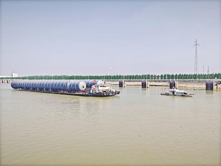 近日,裝載兩臺(tái)“巨無(wú)霸”的船舶“興鑫8”輪通過(guò)泰州引江河高港船閘,安全入江。