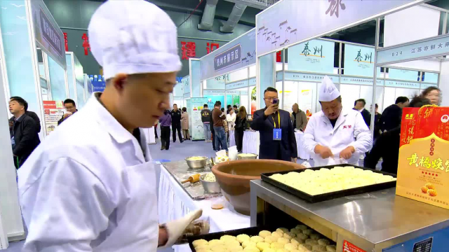 泰州作為長(zhǎng)三角中心城市之一,也是一座“美食之都”。在這場(chǎng)土特產(chǎn)盛宴中,泰州帶來(lái)了泰興黃橋燒餅、靖江香沙芋、興化手工魚圓、大閘蟹等本地特色美食。在泰興黃橋燒餅展臺(tái),現(xiàn)做現(xiàn)烤的燒餅色澤金黃,香酥可口,頗受歡迎,一上午就賣出了六大盤。 泰興市天勇黃橋燒餅經(jīng)理王偉龍說(shuō):“黃橋燒餅是我們江蘇省級(jí)的非物質(zhì)文化傳承遺產(chǎn)項(xiàng)目。希望通過(guò)這次活動(dòng)把這個(gè)燒餅帶向全國(guó),讓全國(guó)的人民群眾都能喜歡上我們的泰州的黃橋燒餅。”