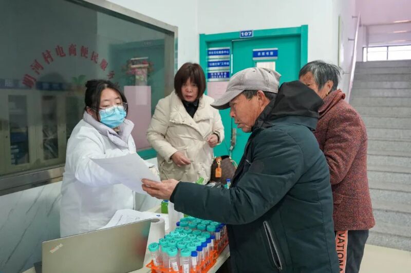 清晨六七點,許莊街道孔橋社區明河村衛生服務站內已人潮涌動,大家有序排隊,準備進行一個個體檢項目。