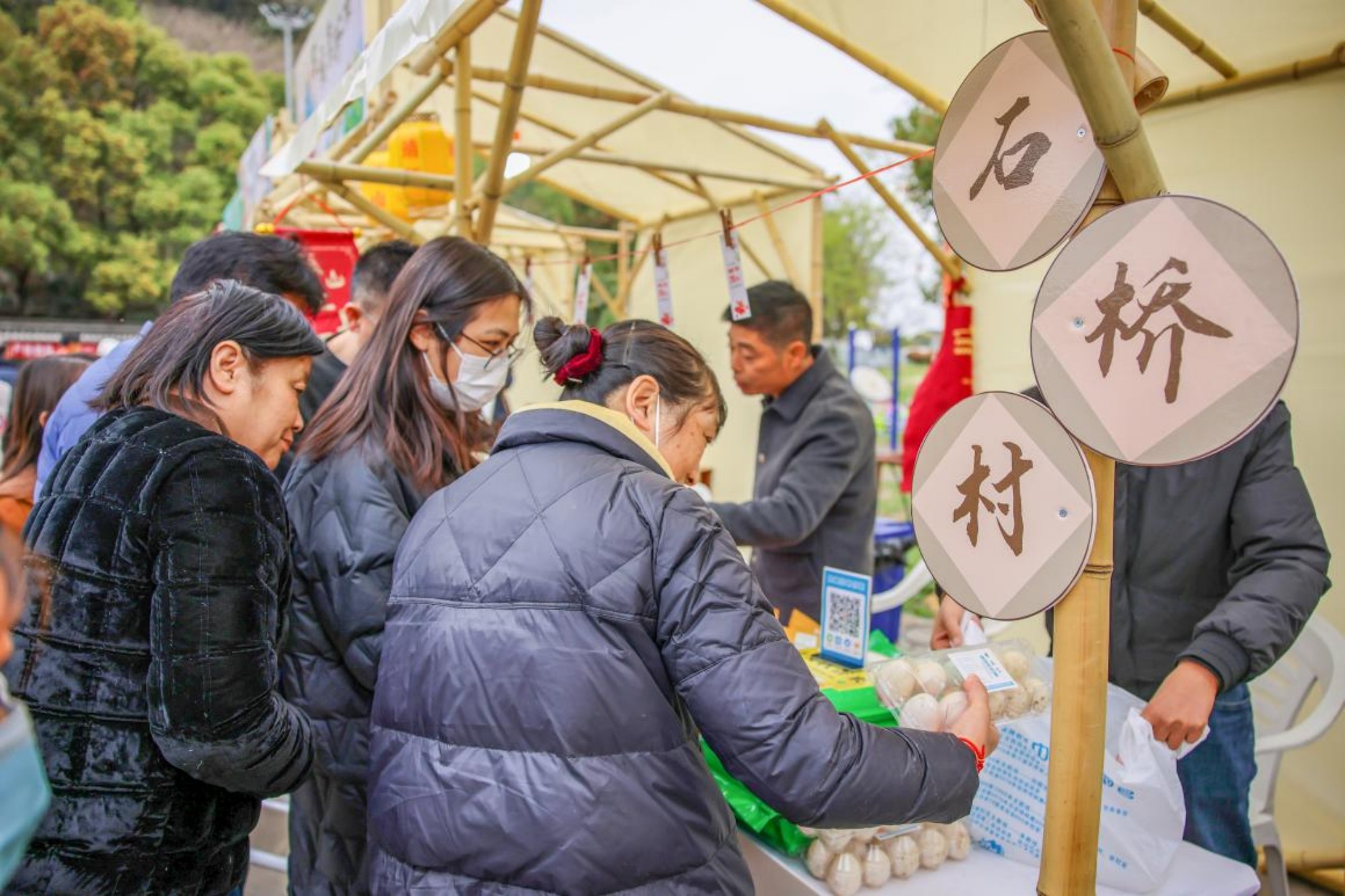 孤山山前廣場是核心攤位區域,孤山鎮各村帶來了特色農產品、手工非遺制品、手作甜品等。“雖然才擺攤第一天,但我們帶來的葵花籽油已全部售空。”樂莊社區黨支部書記陳銘介紹,近年來,社區組織村民種植油葵、油菜、芝麻等油料作物,并購置機器壓榨、罐裝,受到不少客戶青睞。石橋村也將地產的黑大麥粯子、大米帶到現場作推介,物美價廉的產品供不應求。除了孤山本鎮攤位,來自生祠鎮利珠村的農副產品、西來鎮的張德興醬菜、季市鎮的酒酵燒餅等也紛紛亮相。