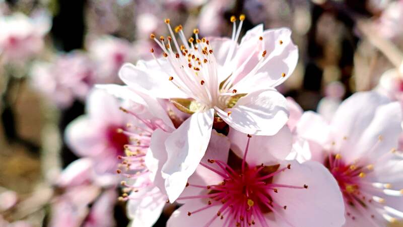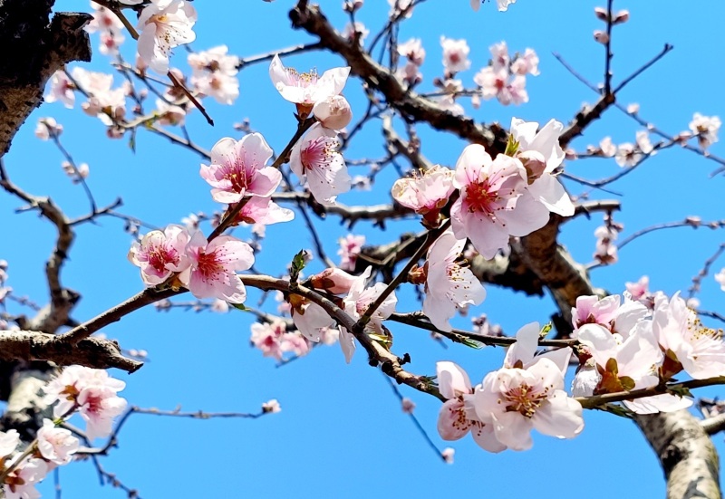 行走在桃林花海,如同路過(guò)一排排緋紅的詩(shī)行。可以欣賞到“桃花一簇開(kāi)無(wú)主,可愛(ài)深紅愛(ài)淺紅”的層次美感,也能體會(huì)到“人面桃花相映紅”的美好意境。