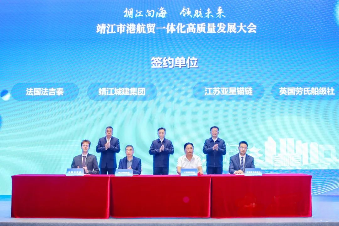 大明長江碼頭位于長江江陰水道北岸、靖江下四圩港河下游,由大明國際投資興建,年設計通過能力達105萬噸。作為長江經濟帶的重要物流樞紐,大明長江碼頭自去年7月開業后,依托4萬噸級泊位和1200噸桅桿式起重機的硬件優勢,構建起“裝卸—倉儲—轉運”全鏈條服務體系。“自從去年12月取得港口經營許可證以來,今年一季度累計完成貨物吞吐量38.74萬噸,尤其是最近兩個月增勢明顯。”大明長江碼頭相關負責人說,該碼頭正深度融入長三角港口群協同網絡,推出包含多式聯運、保稅倉儲、供應鏈金融在內的一體化物流解決方案,為區域先進制造業升級提供更強勁的物流支撐。 在今年4月11日舉行的靖江市港航貿一體化高質量發展大會上,港航領域行業專家、企業代表齊聚靖江共謀合作;顒蝇F場,進行了靖江市港航貿中心招商推介,法國法吉泰工程技術(上海)、英國勞氏船級社、船舶(海洋)產業技術研究院、交通銀行、靖江中外運船務代理、靖江外輪代理、舟山一清能源、南通天泓能源等企業簽約入駐該中心。靖江依托金融商務中心打造港航貿中心,將為港航上下游企業提供便捷高效的綜合服務。