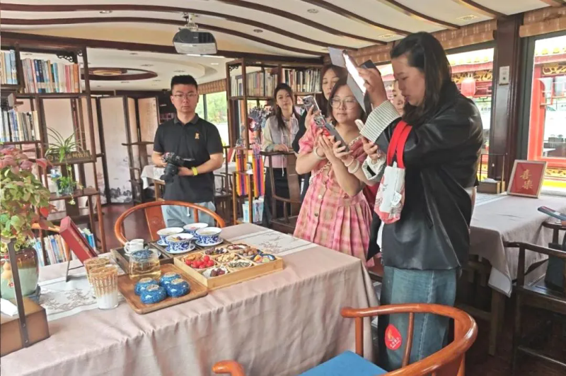 日前,20名來自我區美食探店、生活記錄等多元領域的網絡達人走進留芳茶社,針對“游船早茶”這一沉浸式消費場景,各自進行構思創作,將自身流量轉化為文旅留量。