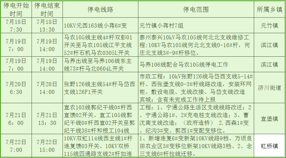 停電公告(07月17日-07月23日)