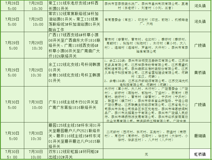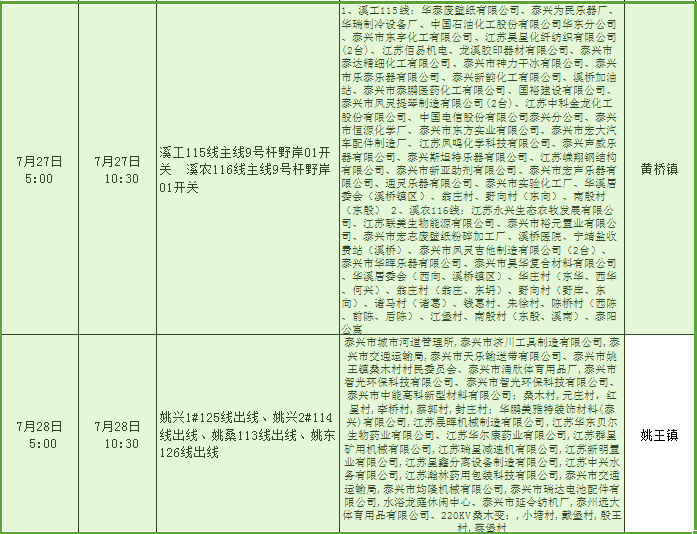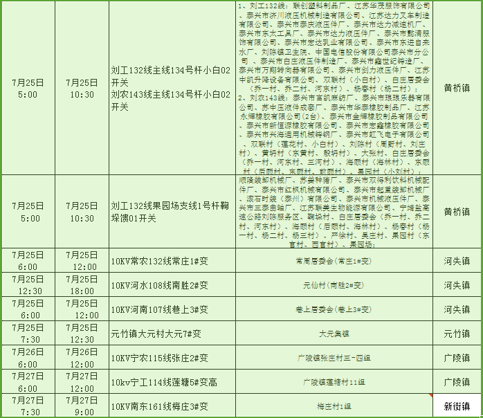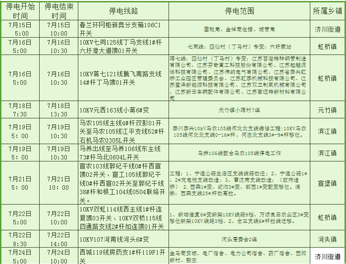 停電公告(07月15日-07月30日)