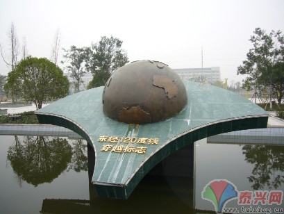 自廣場(chǎng)中心起由北向南穿插以藍(lán)色軸線——水軸。水軸是整個(gè)廣場(chǎng)的中軸線,其間水流潺潺,并設(shè)有噴泉,其中北段軸線寬展,水勢(shì)平緩;南段軸線修長(zhǎng),水流湍急。水軸中部建一東經(jīng)120°經(jīng)線穿越標(biāo)志雕塑,泰興是中國(guó)為數(shù)極少的主城區(qū)穿越東經(jīng)120°線的城市。雕塑凸顯了泰興獨(dú)特的地理位置,為城市又增添一枚名片。軸線兩側(cè),分別栽植紅花繼木3株。這6只紅花繼木球直徑2米,均為獨(dú)桿,較為罕見。水軸的南端放大為濱水廣場(chǎng),作為軸線的結(jié)點(diǎn)和新的觀賞空間的起點(diǎn)。