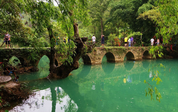 第二天 含早、中、晚三餐 住宿:凱里或雷山 早餐后乘車前往游覽地球同一緯度絕無僅有的巖溶地貌的【小七孔景區】(含電瓶車40元,車程約4小時,游覽2.5H):龜背山原始森林-68級響水瀑布-拉雅瀑布-鴛鴦湖(可選擇自行劃船30元/人)-水上森林:小七孔風景區以精巧、秀美、古樸、幽靜著稱,景區移步換景,布局緊湊。有著名的七孔古橋、68級響水河瀑布、拉雅瀑布、龜背山原始森林、野豬林漏斗森林、天鐘洞臥龍河生態長廊等景點,更有掩映在森林之中的鴛鴦湖。鴛鴦湖秒大小兩個天然湖泊相連而成,大小湖這間有長約700米的“水上林蔭”,兩岸秀木枝蔓成棚。湖區濃蔭四匝,水鳥相呼,境界幽絕,置身其間,有如仙境. 下午乘車前往凱里或雷山,入住酒店(車程約4小時)