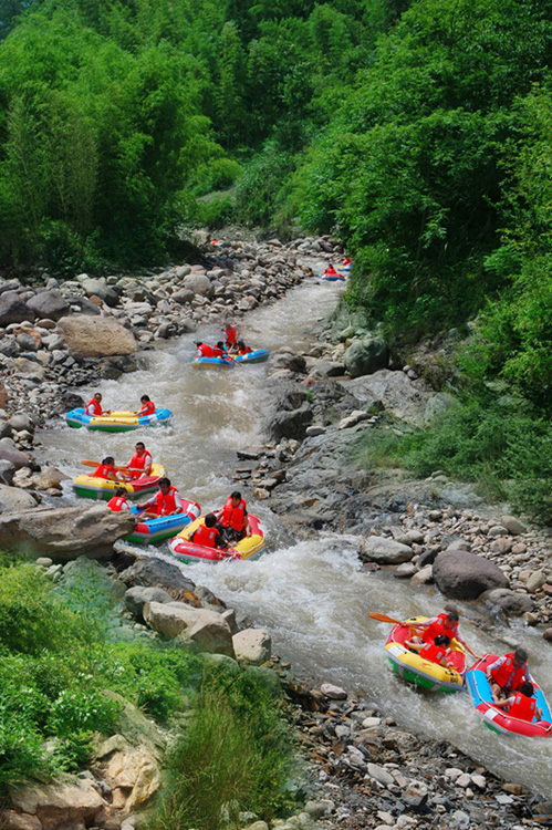 早指定地點集合,車赴浙西臨安。抵達后游覽被旅游界譽為浙西山水壓軸之作的【大龍灣景區】(掛牌80元/人已含,景區小交通20元/人未含,游客現購)。這里崇山峻林、茂林修竹、奇石側立、飛瀑如簾。上接藍天白云,下銜飛瀑激流的“天潭映碧”;聽急流歌弦,看滿目蒼翠的“龍吟聞濤”;巨石橫突如鰲魚之口,恰有吟龍似珠的“鰲魚吐翠”,還有“桃源勝景”、“三女飛瀑”、“云霧山寨”將神話美、原始美、山水美、民俗美融為一體!后去龍井峽體驗激情的【龍井峽雙人皮筏漂流】(掛牌180元/人已含,景區小交通10元/人未含,游客現購)。該處水流湍急,水純泉清,乘伐浪漫奔放,漂流刺激驚險,男人一路歡笑,女人一路尖叫,適宜男女青年嬉水玩耍。(因漂流會受天氣、水量等影響,根據實際情況安排龍井峽漂流或涼源峽漂流或月亮灣漂流, 如因天氣等不可抗力因素導致不能漂流,則更換為游玩【琴湖飛瀑】景區)