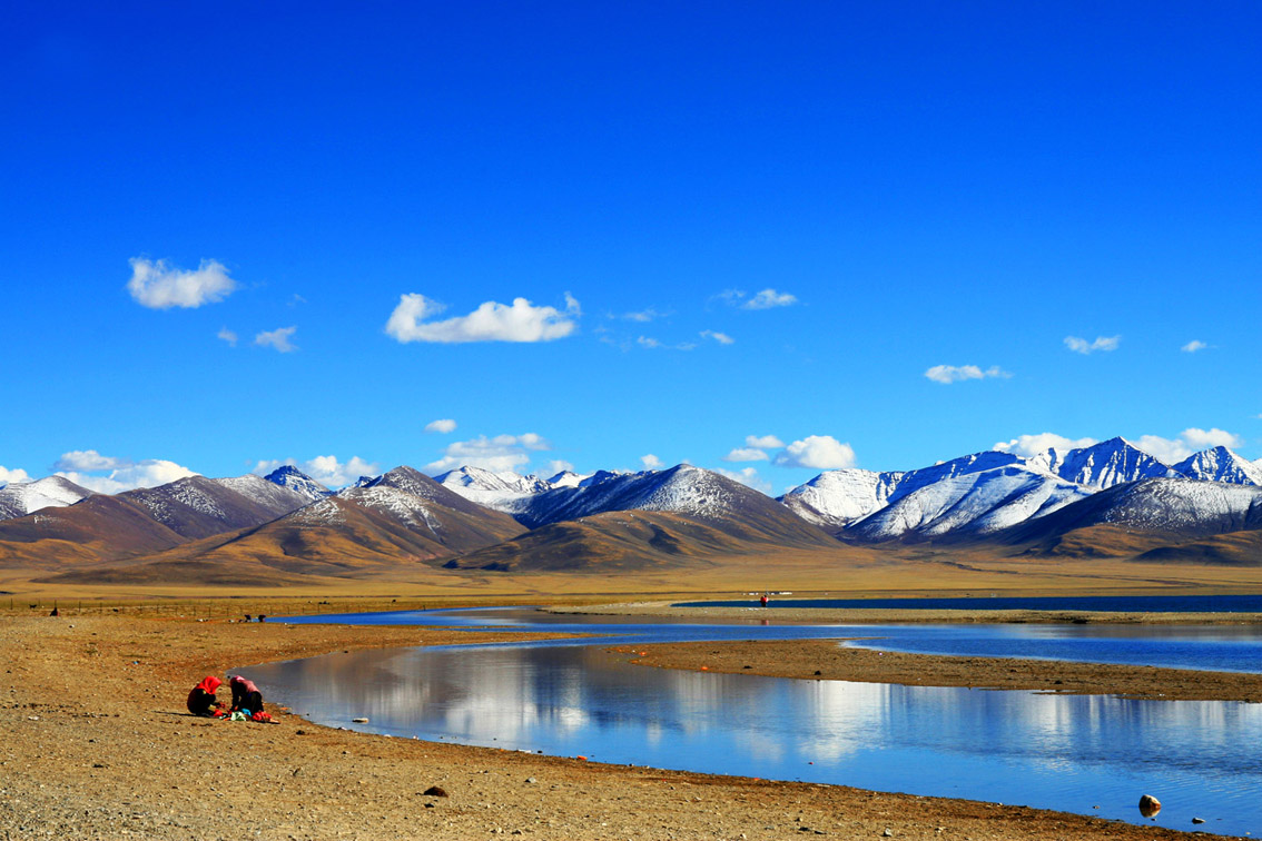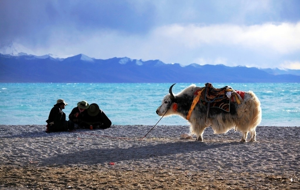 納木錯:為天湖、靈湖或神湖,是藏傳佛教的著名圣地,信徒們尊其為四大威猛湖之一,傳為密宗本尊勝樂金剛的道場。納木錯湖面海拔為4718米,從湖的東岸到西岸全長70多公里,由南岸到北岸30多公里,總面積為1920平方公里,是我們的第二大咸水湖,也是世界上海拔最高的咸水湖,最深處約33米以上。納木錯湖水靠念青唐古拉山的冰雪融化后補給,沿湖有不少大小溪流注入,湖水清澈透明,湖面呈天藍色,水天相融,渾然一體,閑游湖畔,似有身臨仙境之感。