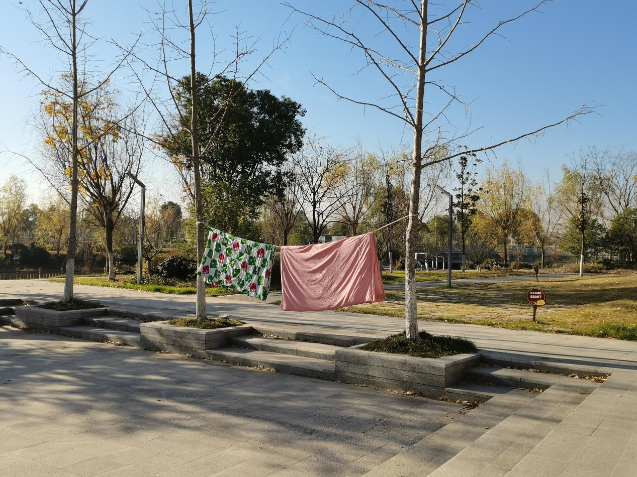 城市公園晾曬衣物