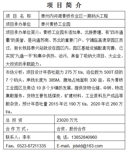泰州內河港黃橋作業區一期碼頭工程