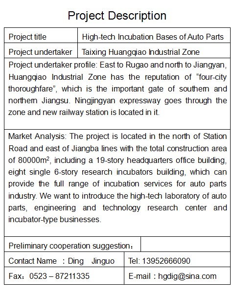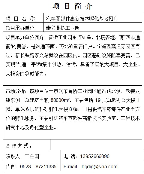 汽車零部件高新技術孵化基地招商