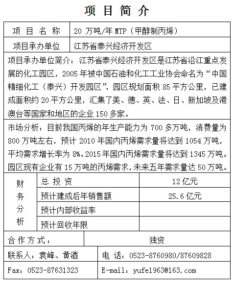 20 萬(wàn)噸/年MTP(甲醇制丙烯)