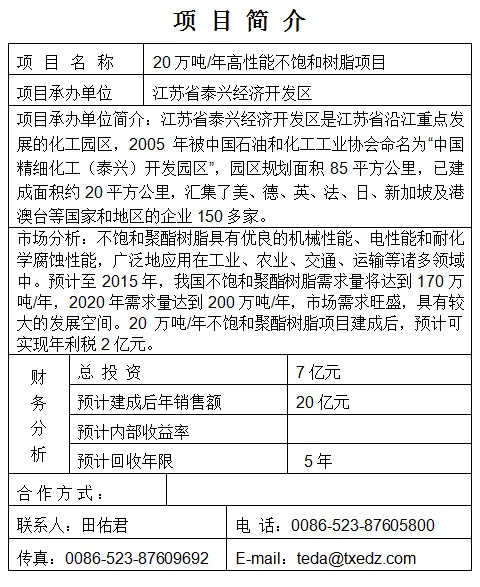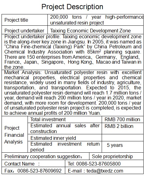 20萬(wàn)噸/年高性能不飽和樹(shù)脂項(xiàng)目