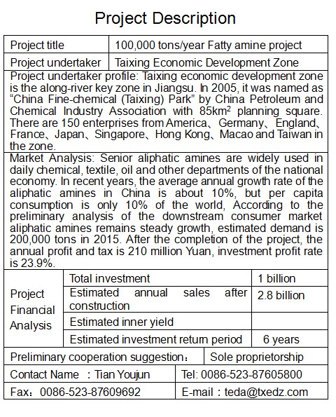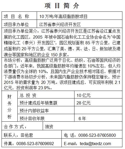 10萬噸/年高級脂肪胺項目