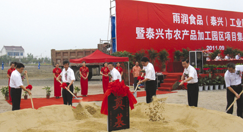 9月8日上午,市農(nóng)產(chǎn)品加工園區(qū)舉行雨潤食品(泰興)工業(yè)園暨農(nóng)產(chǎn)品加工園區(qū)重大項(xiàng)目集中開工儀式。這次集中開工的項(xiàng)目有6個(gè),總投資額近20億元。泰州市委副書記王守法,泰州市副市長丁士宏、盧佩民,我市市委書記張兆江,市長高亞梓,市領(lǐng)導(dǎo)張澤民、劉榮華、張偉、耿元進(jìn)出席開工儀式。 張兆江在致辭中說,雨潤集團(tuán)(泰興)食品工業(yè)園項(xiàng)目奠基暨市農(nóng)產(chǎn)品加工園區(qū)重大項(xiàng)目集中開工,是農(nóng)產(chǎn)品加工園區(qū)建設(shè)過程中的一件喜事,更是全市產(chǎn)業(yè)轉(zhuǎn)型發(fā)展過程中的一件大事。這次集中開工的6個(gè)項(xiàng)目,既是大家前一階段埋頭苦干的豐碩成果,更是今后農(nóng)產(chǎn)品加工園區(qū)發(fā)展和全市農(nóng)業(yè)現(xiàn)代化的希望所在、潛力所在。特別是雨潤集團(tuán)(泰興)食品工業(yè)園項(xiàng)目,投資總量大,產(chǎn)業(yè)帶動性強(qiáng),創(chuàng)造就業(yè)機(jī)會多。項(xiàng)目建成后,必將帶動我市高效規(guī)模農(nóng)業(yè)的加快發(fā)展,進(jìn)一步提升農(nóng)產(chǎn)品加工園區(qū)的影響力和競爭力。 這次集中開工的6個(gè)項(xiàng)目分別是雨潤集團(tuán)投資的雨潤食品泰興工業(yè)園項(xiàng)目,江蘇鑫晨農(nóng)業(yè)科技有限公司投資的1.5萬噸級農(nóng)產(chǎn)品保鮮冷藏倉儲及物流項(xiàng)目,臺灣福昌集團(tuán)投資的江蘇福茂生物科技有限公司食用菌項(xiàng)目,泰州市龍洋木業(yè)有限公司高檔家具項(xiàng)目,泰興市新源農(nóng)產(chǎn)品加工投資有限公司投資的內(nèi)港池項(xiàng)目,園區(qū)農(nóng)民集中居住地二期工程。6個(gè)項(xiàng)目總投資近20億元。其中雨潤集團(tuán)投資規(guī)模最大,帶動性最強(qiáng),總投資約10億元,建設(shè)年屠宰加工200萬頭生豬,年屠宰分割6000萬羽家禽及其配套工程,項(xiàng)目達(dá)產(chǎn)后將形成年銷售收入約40億元,年稅收約4000萬元,直接創(chuàng)造就業(yè)崗位2000個(gè),帶動相關(guān)配套產(chǎn)業(yè)8000人就業(yè),為泰興和農(nóng)產(chǎn)品加工園區(qū)創(chuàng)造新的經(jīng)濟(jì)增長點(diǎn)。 王守法在開工儀式上指出,泰興市農(nóng)產(chǎn)品加工園區(qū)的建設(shè),為泰州市農(nóng)產(chǎn)品的加工升值尋求了一條新路,尤其是雨潤等大型龍頭企業(yè)的加盟,加快了泰州地區(qū)農(nóng)產(chǎn)品加工水平的升級換代。他希望我市為企業(yè)的開工建設(shè)做好各項(xiàng)基礎(chǔ)準(zhǔn)備工作,各開工企業(yè)也要搶抓時(shí)間,快速優(yōu)質(zhì)施工,讓企業(yè)早建設(shè),早投產(chǎn),早見效。 【新聞鏈接】市農(nóng)產(chǎn)品加工園區(qū):努力打造國內(nèi)最大的畜禽產(chǎn)品加工基地 經(jīng)過三年多的打拼,市農(nóng)產(chǎn)品加工園區(qū)基礎(chǔ)設(shè)施基本到位,良好的投資環(huán)境引來了國內(nèi)多家國家級龍頭企業(yè)的加盟,500萬頭的生豬、6000萬羽家禽的屠宰、加工能力,將使這里成為國內(nèi)最大的畜禽產(chǎn)品加工聚集地。 市農(nóng)產(chǎn)品加工園區(qū)建區(qū)三年來,累計(jì)投入4.26億元,完成了一期工程“三路兩橋”及綠化、亮化、水電管網(wǎng)等配套建設(shè)工程,今年下半年又迅速啟動了二期工程“三路三橋兩河”建設(shè),目前園區(qū)“兩橫五縱”的路網(wǎng)框架基本形成,年內(nèi)基本能全線貫通。 在加強(qiáng)園區(qū)基礎(chǔ)設(shè)施建設(shè)的同時(shí),招商工作同步進(jìn)行。已投產(chǎn)的江蘇百匯農(nóng)發(fā)公司年設(shè)計(jì)生豬屠宰加工能力為300萬頭,即將開工建設(shè)的雨潤食品泰興工業(yè)園年設(shè)計(jì)生豬屠宰加工能力為200萬頭,家禽年屠宰、加工量為6000萬羽,方圓8平方公里的泰興市農(nóng)產(chǎn)品加工園區(qū)將誕生全國最大的畜禽產(chǎn)品屠宰加工集聚區(qū)。 |
