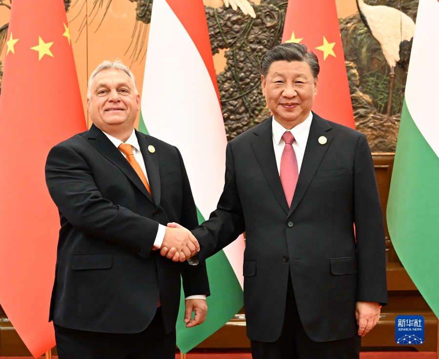 10月17日上午,國家主席習近平在北京人民大會堂會見來華出席第三屆“一帶一路”國際合作高峰論壇的匈牙利總理歐爾班。新華社記者 王曄 攝 歐爾班表示,在習近平主席親自關心和支持下,匈中關系近年來保持良好發展,取得豐碩成果,中國企業的投資與合作,包括匈塞鐵路建設,顯著促進了匈牙利經濟社會發展。匈方深信,習近平主席提出的“一帶一路”倡議將給世界帶來重大改變,有利于促進世界經濟發展,給各國人民帶來更多福祉,匈方堅定支持并將繼續積極參與。當前復雜形勢下,匈牙利致力于深化匈中友好合作關系的決心堅定不移,將繼續做中國在歐盟可以信任的朋友和伙伴。匈方反對任何脫鉤斷鏈和所謂“去風險”的做法,愿同中方一道加強經貿投資、互聯互通等領域合作,深化人文交流。匈方將繼續積極促進中東歐國家同中國合作,推動歐中關系健康穩定發展。 蔡奇、王毅參加會見。 |