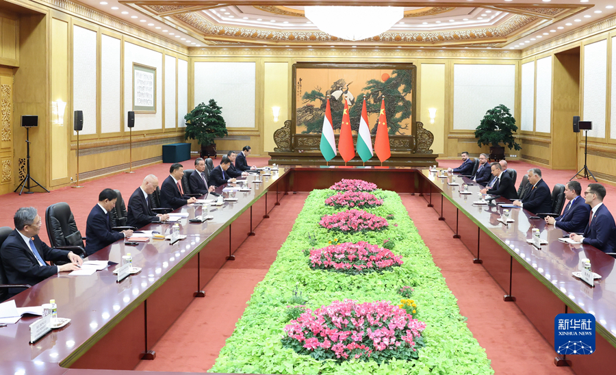 10月17日上午,國家主席習近平在北京人民大會堂會見來華出席第三屆“一帶一路”國際合作高峰論壇的匈牙利總理歐爾班。新華社記者 饒愛民 攝 習近平指出,匈牙利是最早承認并同新中國建交的國家之一,兩國傳統友誼源遠流長。近年來,中匈關系始終保持高水平發展。雙方政治互信不斷加深,互利合作成果豐碩,人文交流豐富多彩,在國際和地區事務中協作良好,特別是攜手抗擊新冠疫情,兩國人民友誼更加深厚。匈方長期堅定奉行對華友好政策,積極支持共建“一帶一路”,歐爾班總理連續三次出席“一帶一路”國際合作高峰論壇,我高度贊賞。中方愿同匈方繼續做彼此信賴、合作共贏的好朋友、好伙伴,以明年建交75周年為契機,推動中匈全面戰略伙伴關系不斷邁上新臺階,續寫中匈友好合作關系的新篇章。 習近平強調,中方愿同匈方加強治黨治國理政經驗交流,堅定支持彼此選擇的發展道路,加強“一帶一路”倡議同匈牙利“向東開放”戰略深度對接,共享發展機遇和成果。雙方要爭取匈塞鐵路按期建成通車,辦好中歐商貿物流合作園區,擴大跨境電商規模,拓展信息科技、新能源產業合作。中方愿擴大進口匈牙利優質農產品。雙方要用好互設的文化中心平臺,鼓勵兩國語言教學,讓中匈傳統友誼世代相傳。中國-中東歐國家合作符合中國和中東歐國家共同利益,中方愿同匈方一道,繼續引領中國-中東歐國家合作正確方向,不斷豐富中國-中東歐國家合作內涵,助力中歐關系行穩致遠。