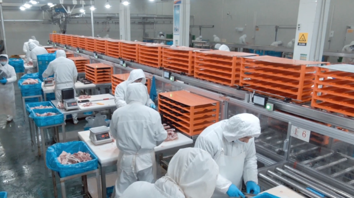 4月5日,在江蘇百匯農業發展有限公司,精細化生豬分割生產設備正在作業。在加工車間,公司副總經理白開榮邊走邊介紹,企業獨立自主研發了惠多拉智能精選中心,先后獲得了11項專利?梢宰屆恳晃幌M者知道產品所有的詳細信息,既保證了消費者的利益,又保證了上下游企業各個端口的權益。