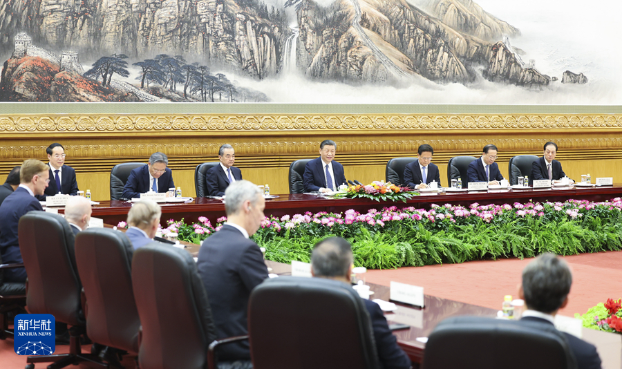 3月27日,國家主席習(xí)近平在北京人民大會堂集體會見美國工商界和戰(zhàn)略學(xué)術(shù)界代表。新華社記者 黃敬文 攝
