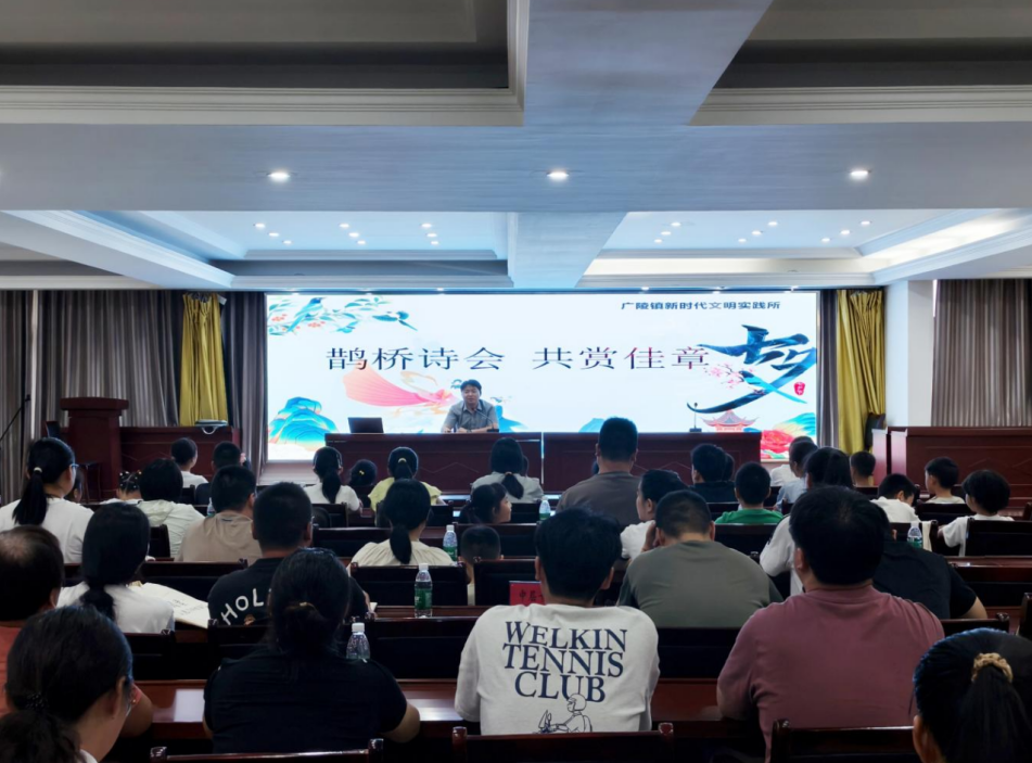 詩韻悠悠,喚醒文化記憶。詩詞,是歲月長河中沉淀的璀璨明珠,串起了古今的情思。在廣陵鎮(zhèn)新時代文明實踐所的道德講堂里,“同心圓夢”志愿者趙涵濤帶領(lǐng)大家一同探尋七夕詩詞的綺麗世界。從秦觀筆下“兩情若是久長時,又豈在朝朝暮暮”的深情繾綣,到古詩十九首中“迢迢牽牛星,皎皎河漢女”的悠遠空靈,在集體誦讀的朗朗書聲中,詩意如潺潺溪流,漫溢每個人的心田。