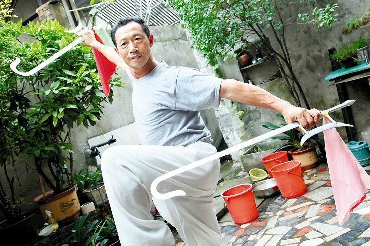 ①瞧這把式,可不是花拳繡腿。 ②這些年,李明福帶了不少徒弟,他現(xiàn)在還是社會(huì)體育輔導(dǎo)員。 ③李明福的 “兵器庫(kù)”,這些健身器材大部分是李明福自己動(dòng)手制作的。 ④李明福自己打造的燕子鏢。 9日上午,家住泰興市黃橋鎮(zhèn)區(qū)的李明福來(lái)到泰州體育館,參加由江蘇省武術(shù)運(yùn)動(dòng)協(xié)會(huì)舉辦的武術(shù)比賽。 李明福的比賽在下午。中午休息時(shí),他拿出雙劍活動(dòng)一下筋骨,沒(méi)想到一個(gè)套路舞下來(lái)后,周圍站滿了同行,“你舞得太好了,讓我們?cè)趺瓷吓_(tái)啊?” 當(dāng)天下午,李明福參加了兩個(gè)項(xiàng)目,一是男子老年A級(jí)劍術(shù);二是男子老年A級(jí)雙刀。兩個(gè)項(xiàng)目均以最高分奪魁。 李明福今年61歲,習(xí)武已有46年。 少年時(shí),遇到一個(gè)姓何的老頭,手拿一把銹跡斑斑的單刀,舞得虎虎生風(fēng)。李明福佩服得五體投地,拜何老頭為師。 師傅教刀槍劍鉤,可當(dāng)時(shí)又買不到,李明福就向師傅討來(lái)圖紙,利用在工廠上班的機(jī)會(huì)做。他先請(qǐng)鐵匠打出坯子,然后拿到車間去打磨,再安上劍把和刀把。 日出日落,春秋冬夏,李明福堅(jiān)持每天練武,單刀、雙刀,單劍、雙劍,長(zhǎng)槍,雙鉤……李明福越練越健康,1.68米的身高,體重140斤,渾身上下沒(méi)有贅肉,說(shuō)話嗓音洪亮,走路步履輕巧。 朋友紛紛上門(mén)拜師,有的還帶著孩子一起來(lái)學(xué)。李明福來(lái)者不拒,名聲越來(lái)越響,不少工廠都請(qǐng)他上門(mén),教職工們習(xí)武健身。 一些想報(bào)考武術(shù)專業(yè)的高考學(xué)生,聽(tīng)說(shuō)李明福后紛紛登門(mén)拜師。為了讓孩子們?cè)谧疃痰臅r(shí)間里學(xué)會(huì)幾個(gè)武術(shù)套路,李明福不分早晚地教。每天傍晚,老伴都要蒸二十幾個(gè)饅頭送給徒弟們吃。目前,已經(jīng)有十幾個(gè)徒弟考上了心儀的高校。 教人習(xí)武健身,李明福分文不收,甚至還倒貼錢為徒弟買刀劍家伙,購(gòu)置運(yùn)動(dòng)服。為了以武會(huì)友,李明福多次舉辦武術(shù)交流活動(dòng),邀請(qǐng)周邊縣市的武術(shù)愛(ài)好者參加,每次都要貼上四五千塊錢。“心要寬,體要松。”李明福說(shuō),因?yàn)槌绨輦b客,他愛(ài)上了武術(shù);為了強(qiáng)身健體,他堅(jiān)持每天習(xí)武。武術(shù)不但給了他健康的體魄,還給了他快樂(lè)。 記者 姚翔/文 張慶龍/圖 |