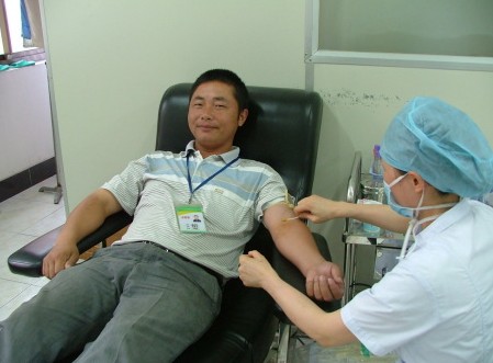 平時(shí),殷建華還自發(fā)地加大了無償獻(xiàn)血的宣傳,經(jīng)常利用朋友聚會的機(jī)會宣傳無償獻(xiàn)血的好處,逐漸使無償獻(xiàn)血志愿者越來越多。目前,泰興當(dāng)?shù)卣S?00多人長期堅(jiān)持無償獻(xiàn)血。泰隆集團(tuán)職工葉新華就是在殷建華的影響下加入了志愿者行列,今年也被表彰為全國無償獻(xiàn)血奉獻(xiàn)獎(jiǎng)金獎(jiǎng)。泰興全市獲得全國無償獻(xiàn)血奉獻(xiàn)獎(jiǎng)銀獎(jiǎng)、銅獎(jiǎng)的人數(shù)也在泰州地區(qū)名列前茅。