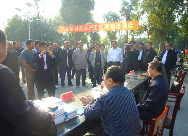 為了提高科技入戶培訓班的效果,讓水產養殖示范戶都能更好地掌握培訓的內容,并能聯系各自的養殖實際加以靈活應當用,經過兩名技術指導員的精心準備,在江蘇泰興市廣陵鎮政府、農業服務中心的大力支持下,2011年9月25日上午在普豐生態園舉辦了漁業科技入戶現場培訓班。兩名技術指導員、廣陵鎮農業中心的全體工作人員、10個自然村的分管農業的工作的主任、40個水產養殖示范戶、20個水產養殖輻射戶代表近一百人參加了這次培訓班。