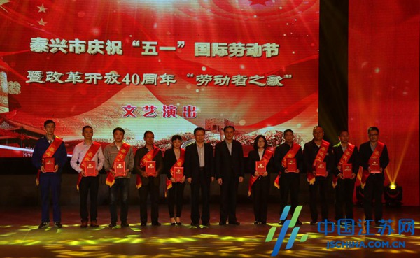 中國江蘇網(wǎng)4月28日泰州訊(夏秋 季兵)4月27日,泰興市舉辦慶祝“五一”國際勞動節(jié)暨改革開放40周年“勞動者之歌”文藝演出,來自該市各行各業(yè)的勞動者和建設(shè)者們歡聚一堂,共慶“五一”國際勞動節(jié)。慶祝會上,泰興市領(lǐng)導(dǎo)為江蘇省五一勞動獎?wù)芦@得者,泰州市五一勞動獎?wù)芦@得者以及30名新時期泰興工匠授獎。