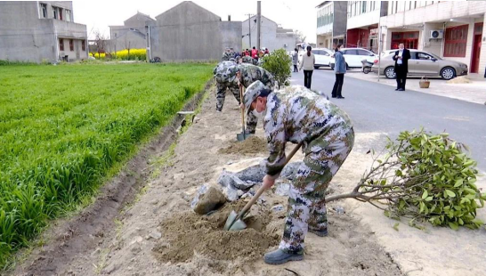曲霞鎮 在曲霞鎮朱圩村八組九組莊前道路兩側,三十多名民兵和志愿者正在忙碌。道路長1100米,兩側將栽插90棵紅葉石楠、30棵桂花樹。朱圩村圍繞“三清一綠”行動方案,重點打造部分村莊主干道兩旁綠化,并組織大批村民,整治提升村莊環境。